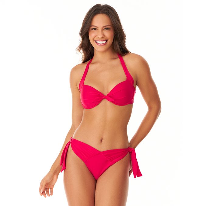 Confeccionado com 85% poliamida 15% elastano, e forro com 90% poliamida 10% elastano. Este conjunto oferece excelente elasticidade e ajuste perfeito ao corpo. O top possui aro e bojo que modela os seios, além de um lindo detalhe em amarração no busto, suas alças mais largas possuem forma de amarração tradicional, proporcionando o ajuste ideal. Enquanto a calcinha biquíni possui modelagem frontal mais despojada em formato de asa delta, suas laterais são de amarração, além de garantir uma cobertura confortável e segura, perfeita para qualquer atividade de verão.