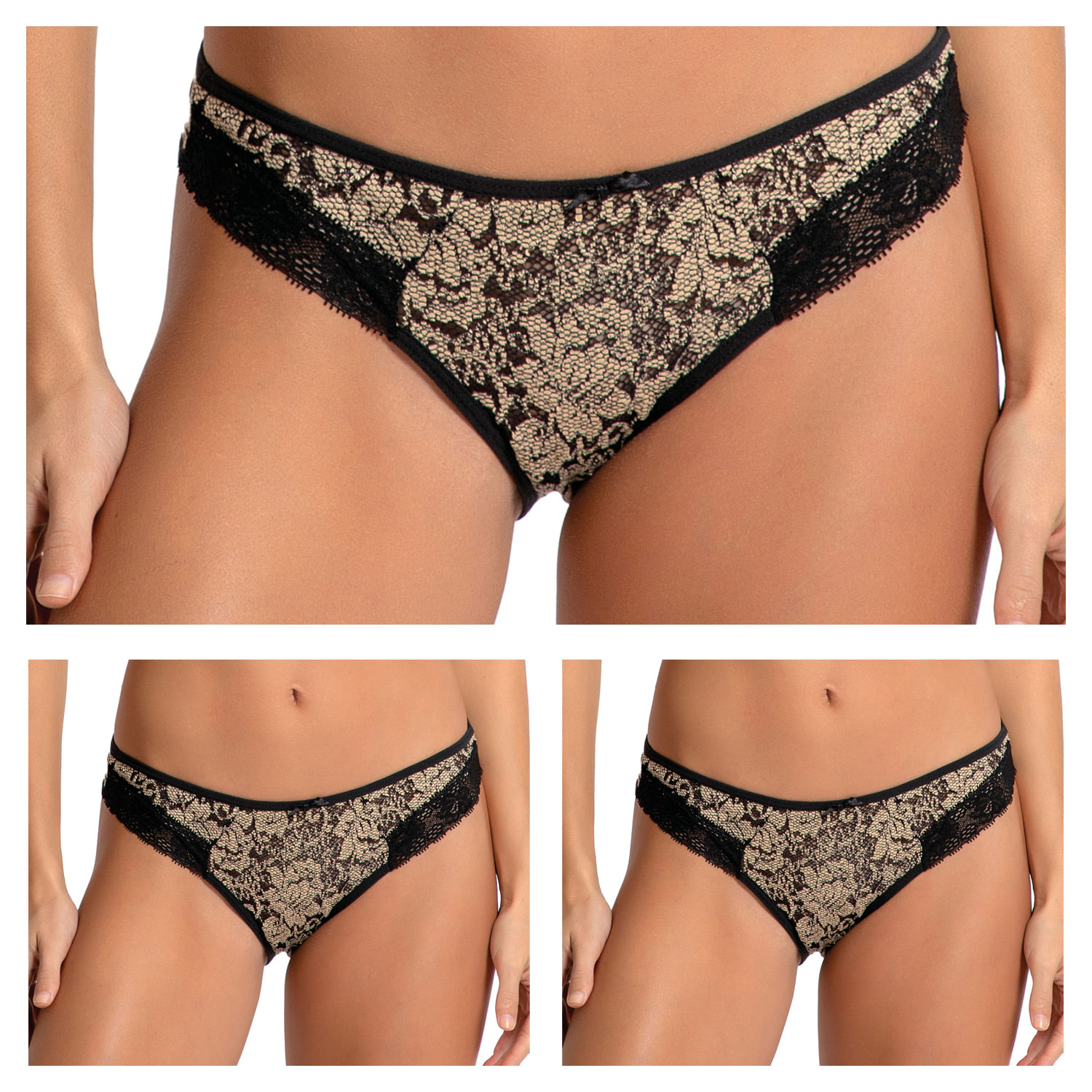 O Kit 3 Calcinhas Biquíni Roma é inspirado na elegância e na história da charmosa cidade italiana. Com renda delicada e leve elasticidade em tons de preto e dourado, o kit traduz o luxo e a beleza clássica de Roma em peças que unem conforto e feminilidade.