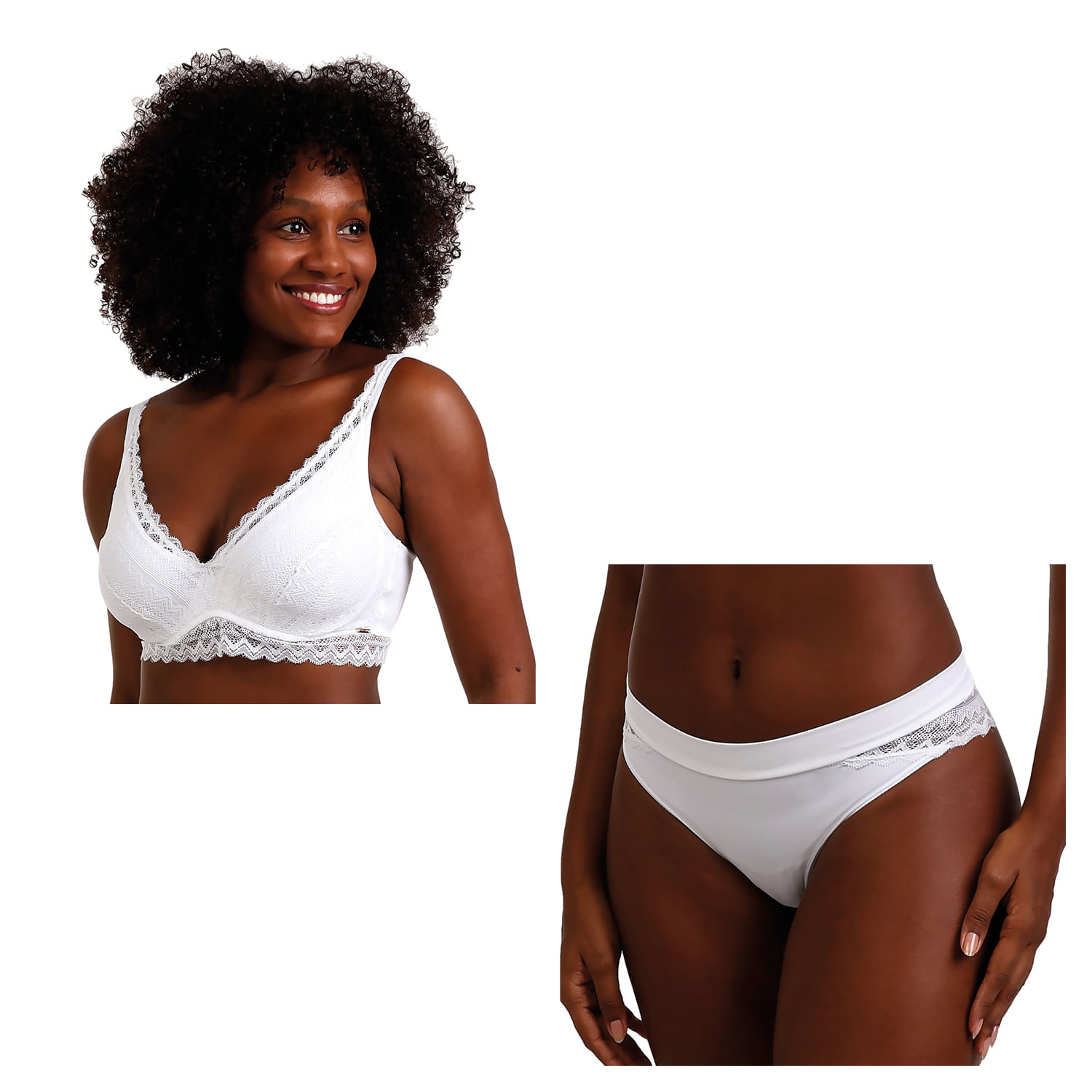 Confeccionado em 89% poliamida e 11% elastano, com renda 90% poliamida e 10% elastano. O sutiã possui modelagem cobertura total, com aro e sem bojo, garantindo sustentação e conforto. Detalhes de renda no decote e cós adicionam charme, enquanto as alças reguláveis e o fecho com quatro níveis de ajuste proporcionam caimento perfeito.