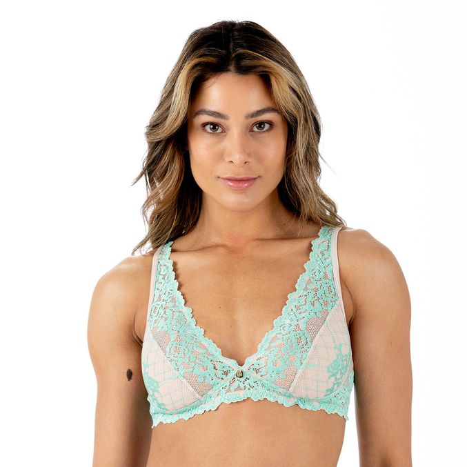 Conforto, segurança, valorização do busto com decote profundo e renda até os ombros.